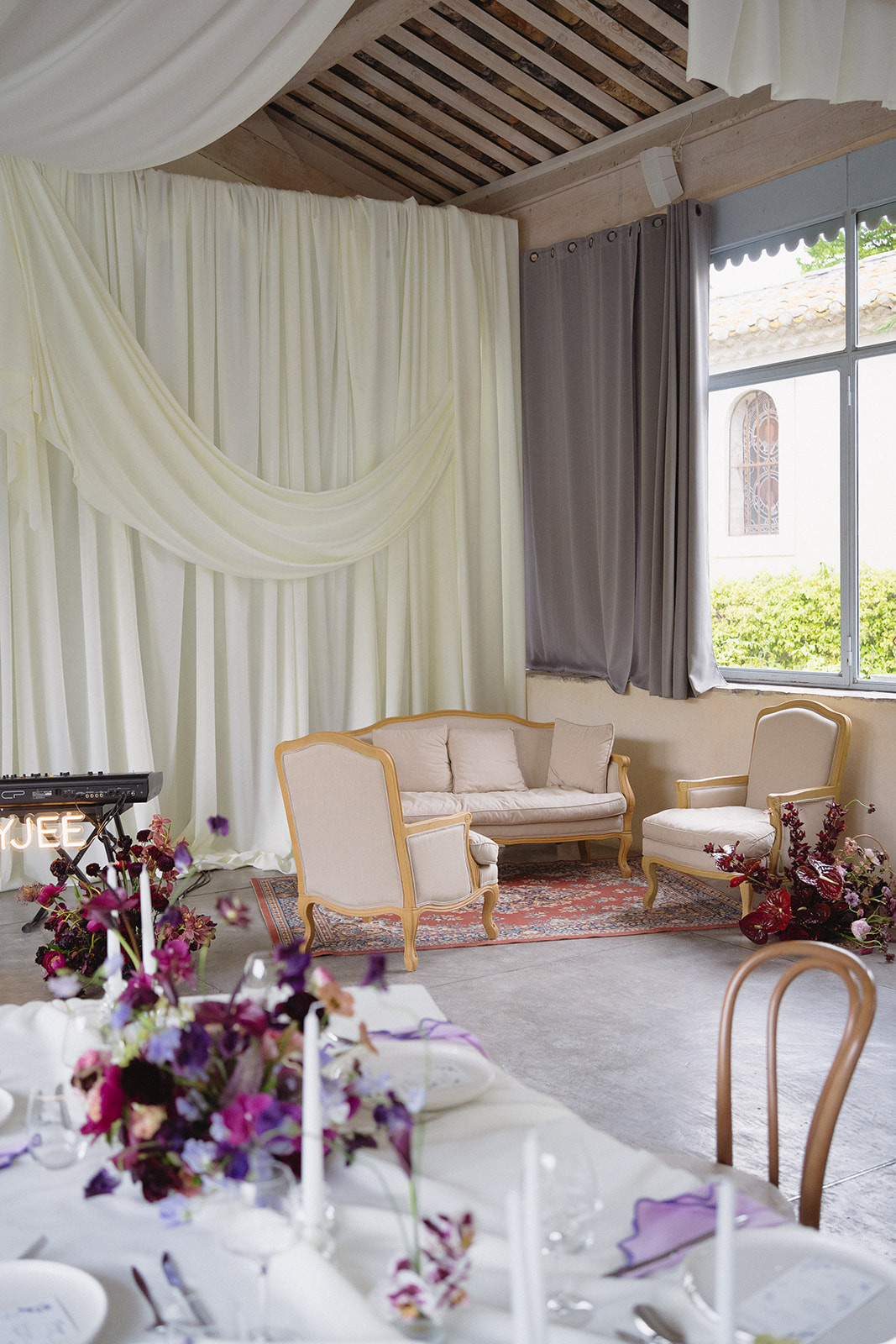 Wedding Planner & Designer : Noella Wonder Events | Lieu : Domaine de Blanche Fleur | Traiteur : Maison Nans | Photographe : Laurine Bailly | Content Creator : La Mira | Designer Floral : Les Fleurs d'Alkonost | Drapés & Papeterie : PS I Love You | Musique : Heyjee | Violoniste : Raffaella Violin | MUAH : Au Cœur d'Ambre | Mobilier : Options | Dîner de bienvenue : Gaël Pizza