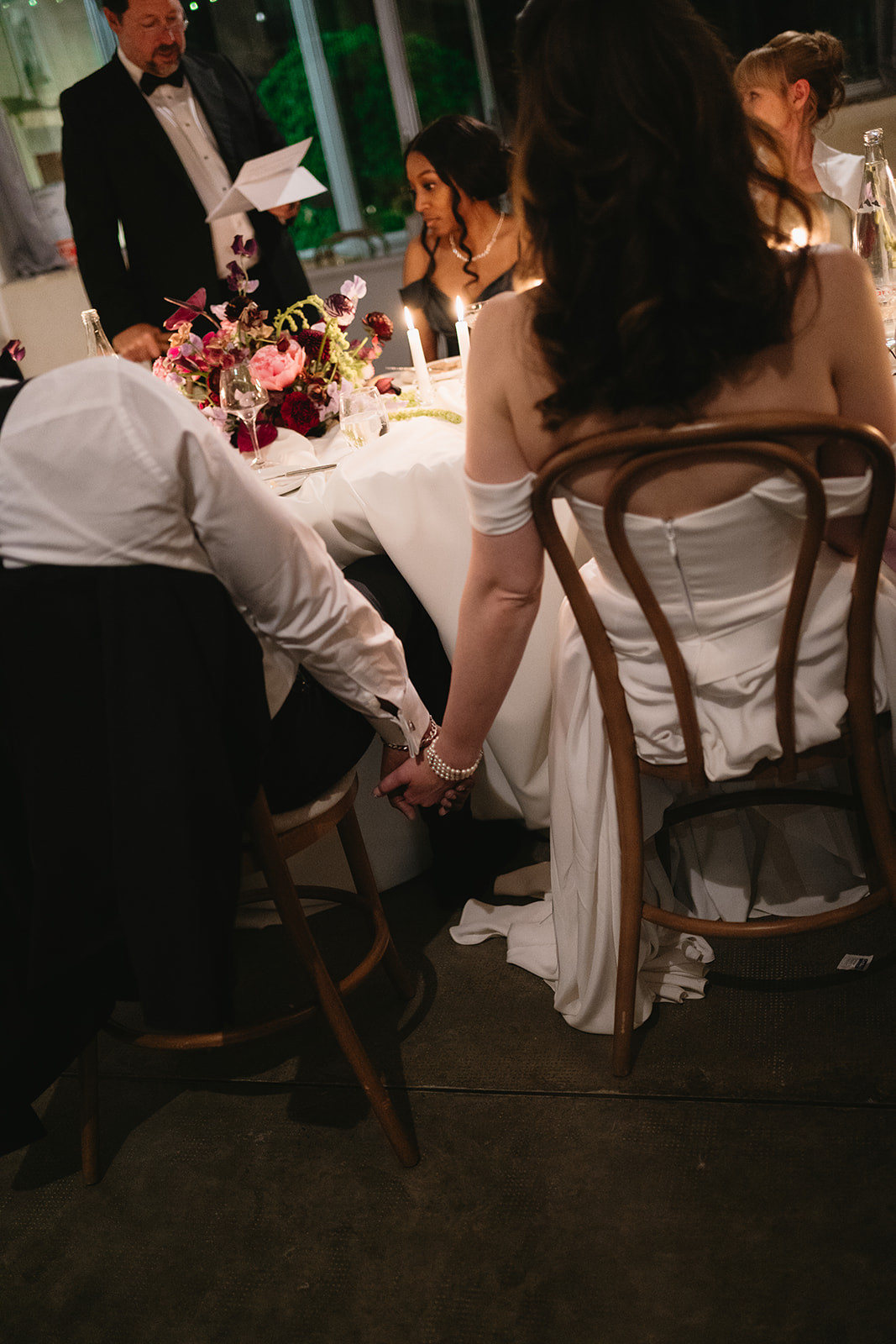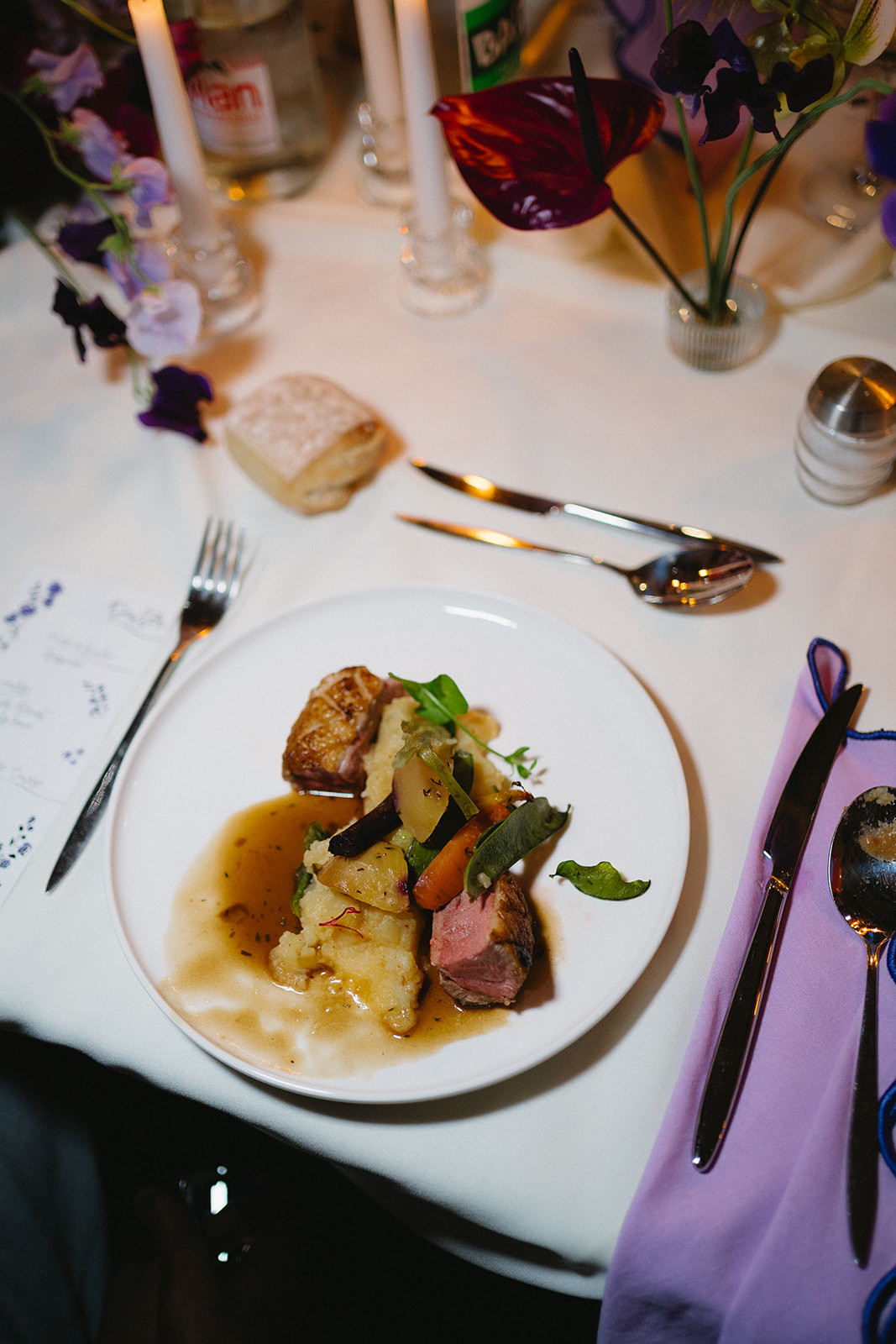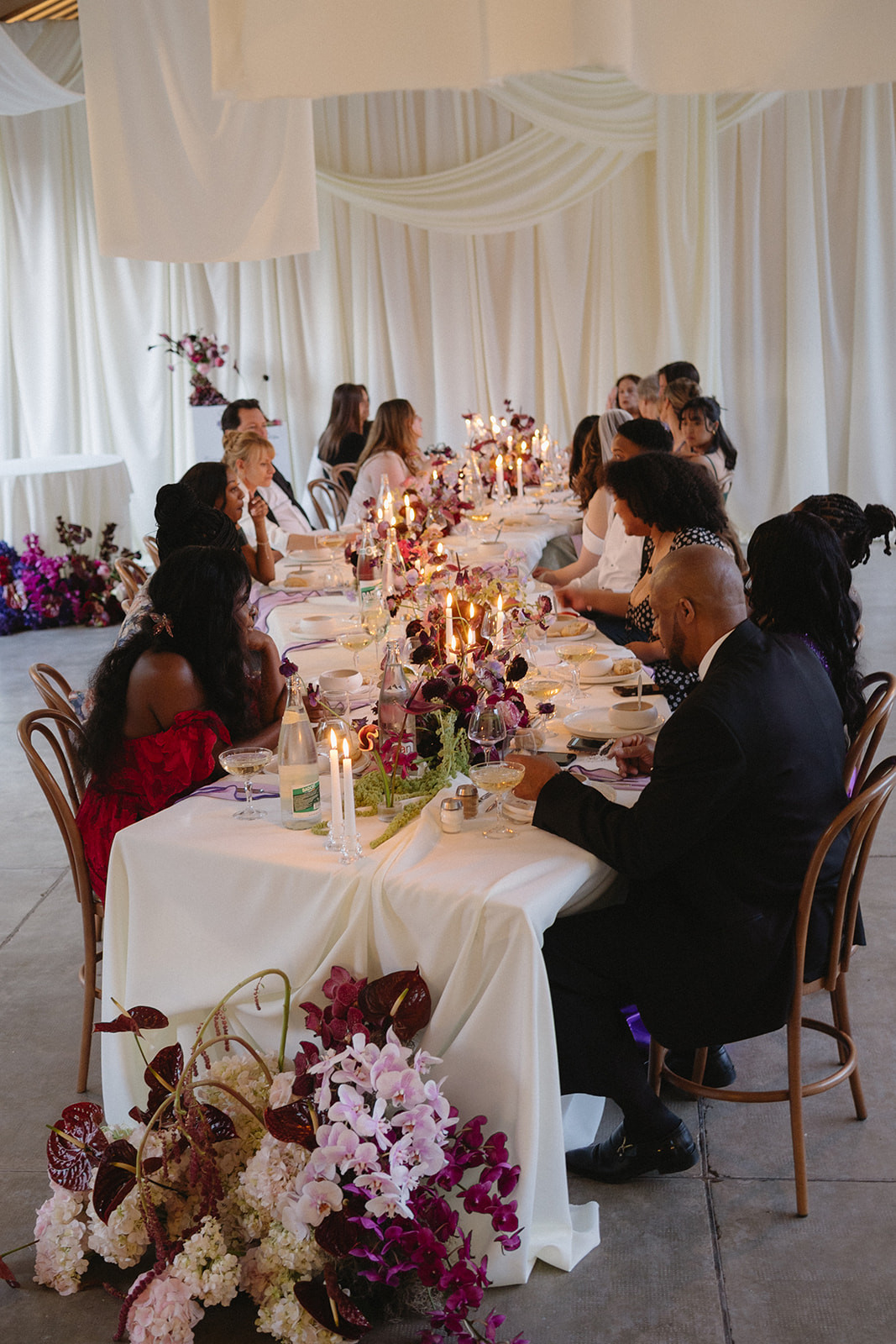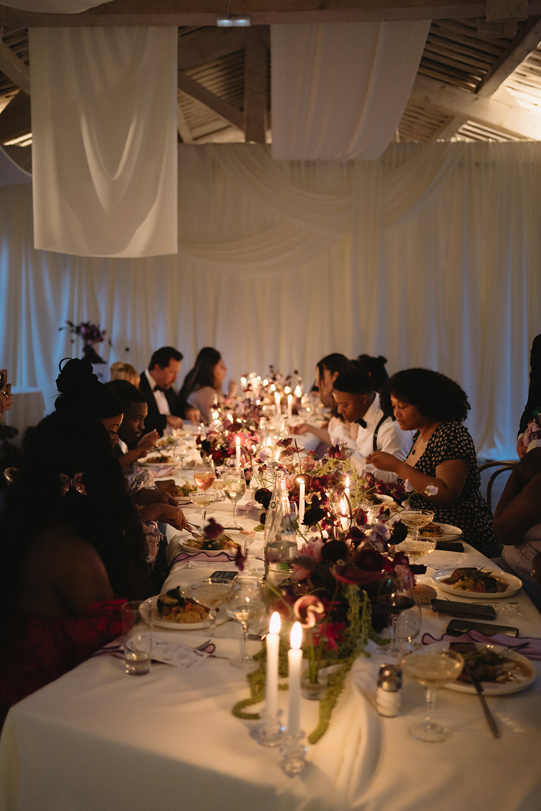 Le dîner, disposé en longues tablées façon banquet, favorisait la convivialité, sublimée par le bois naturel et des touches créatives.